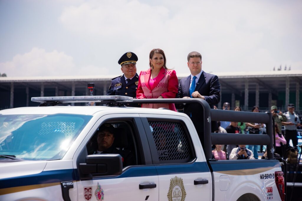 Con Tlatelolco, Ciudad de México, jueves 24 de julio.- La Jefa de Gobierno de la Ciudad de México, Clara Brugada Molina, encabezó la entrega de 3 mil 500 nuevas patrullas a la Secretaría de Seguridad Ciudadana (SSC), con una inversión pública histórica de 7 mil 460 millones de pesos, como parte del fortalecimiento de la estrategia de seguridad y paz en la capital.