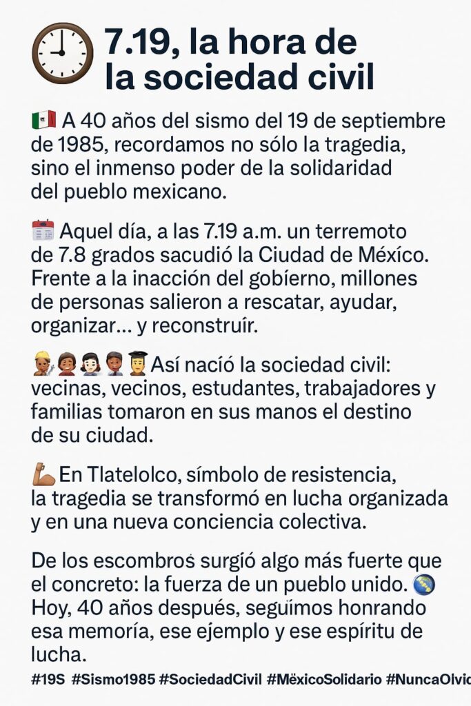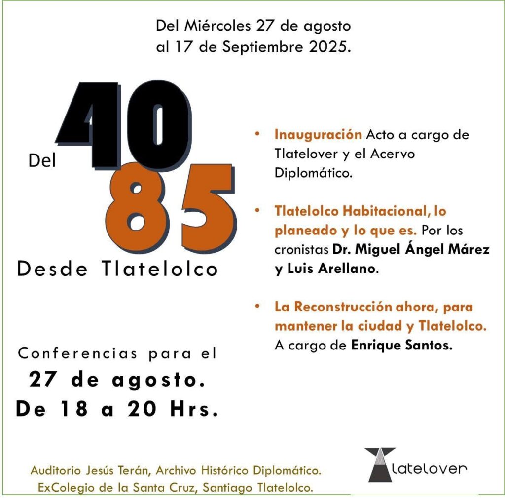 Ciudad de México, jueves 4 de septiembre de 2025.- La memoria no tiembla, pero nos hace temblar. A 40 años del sismo del 19 de septiembre de 1985, que fracturó la ciudad y la conciencia nacional, Tlatelolco vuelve a colocarse en el centro de la reflexión colectiva.
