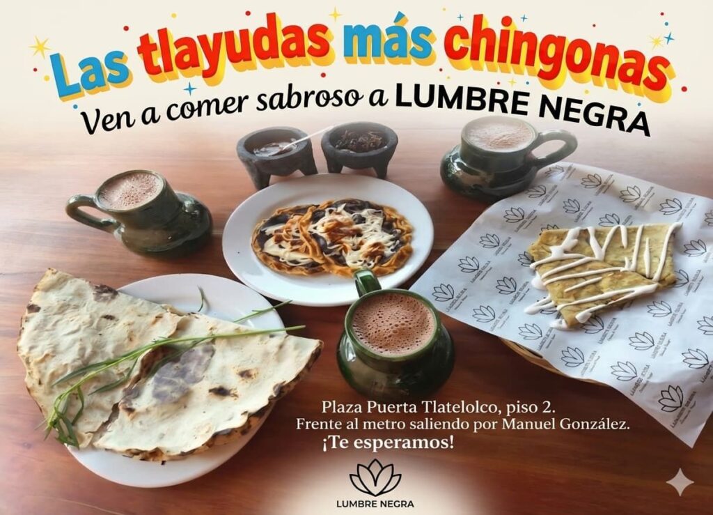 Este sábado 14 de marzo, a partir de las dos de la tarde, abrirá sus puertas “Lumbre Negra”, una propuesta de cocina oaxaqueña que llega al segundo piso del Centro Comercial “Puerta Tlatelolco”, justo frente a la estación del Metro de la Ciudad de México, conocida por generaciones de vecinos como Metro Tlatelolco.