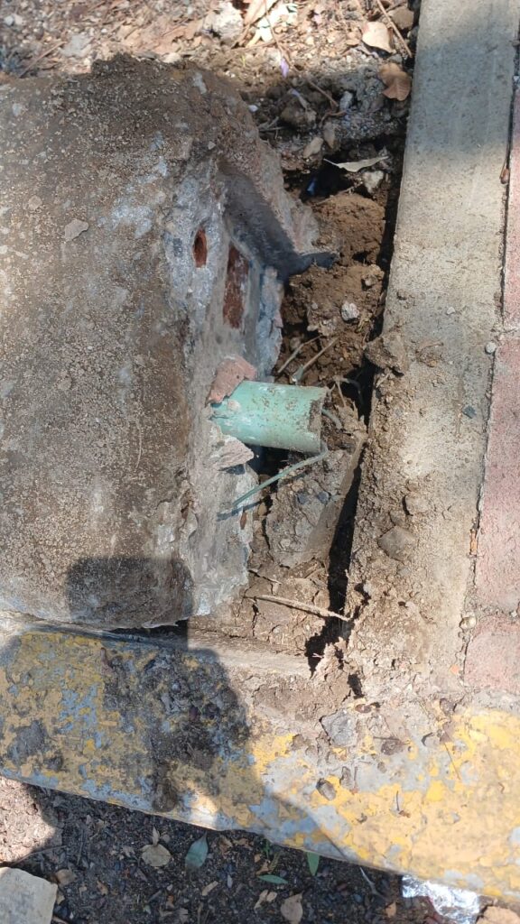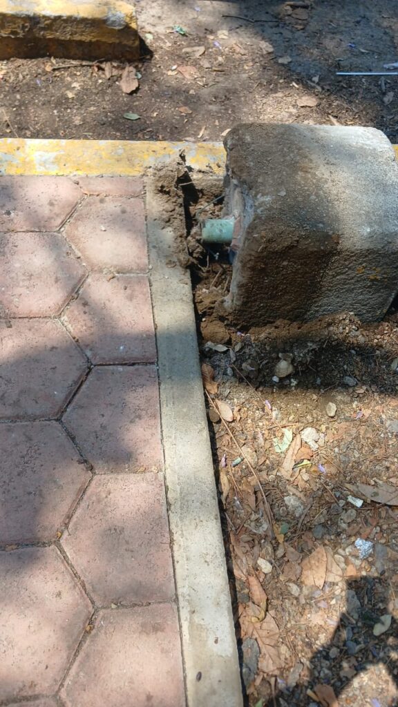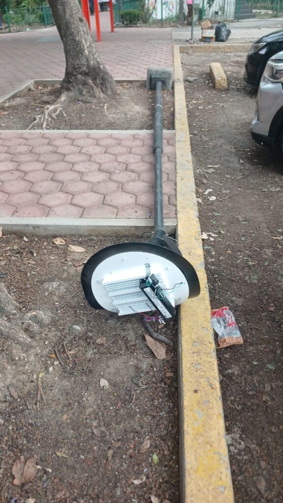 Pero la respuesta fue una simulación de solución: la luminaria fue colocada “en tierra”, como si bastara enterrarla para resolver el problema estructural. Sin cimentación, sin técnica, sin supervisión.
